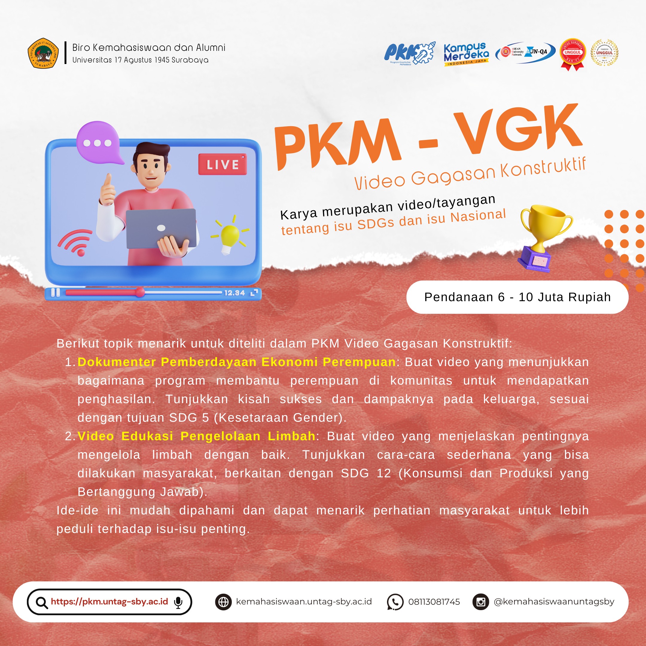 Email kemahasiswaan@untag-sby.ac.id :